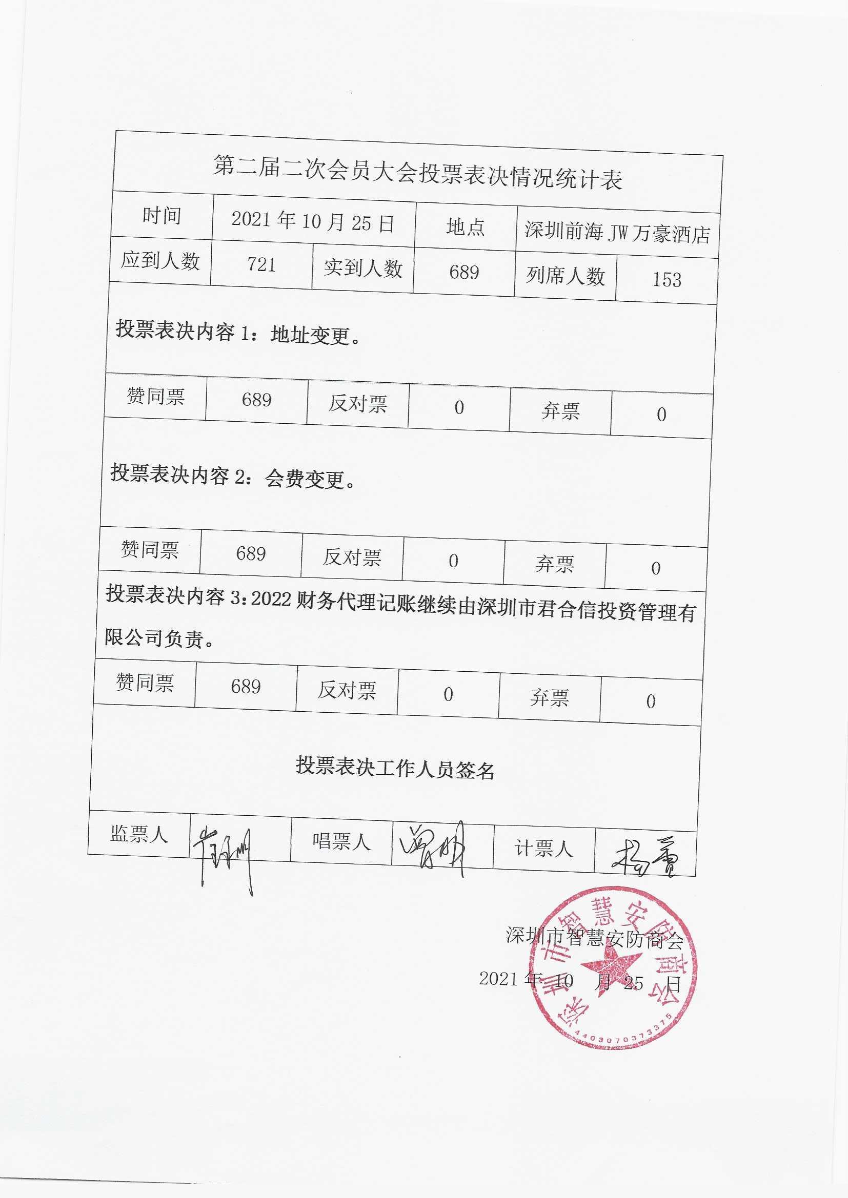 第二届二次会员大会投票表决情况